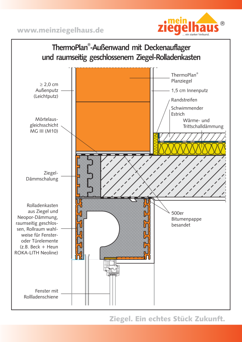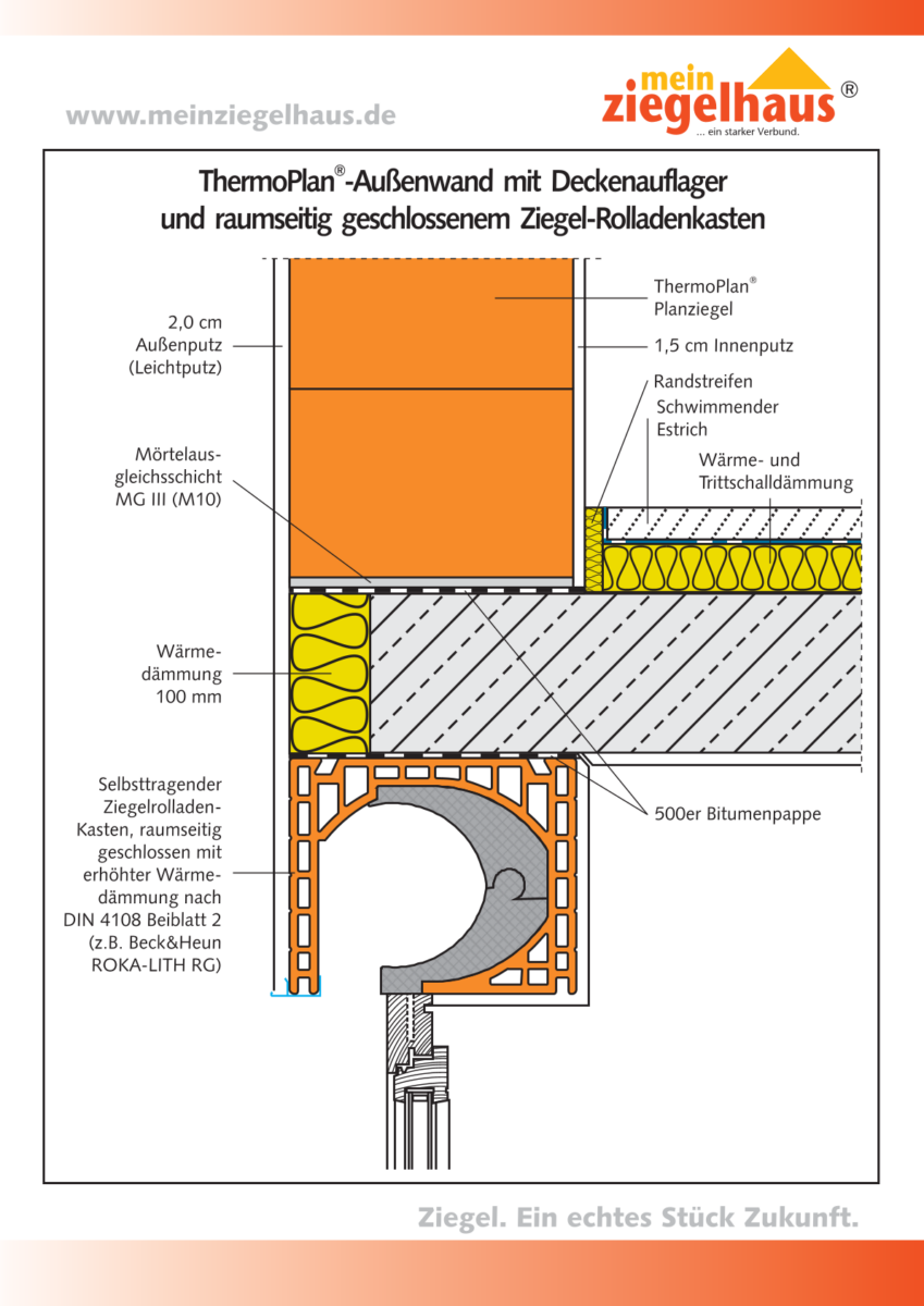 Deckenauflager und Ziegel-Rollladenkasten (Variante 2)