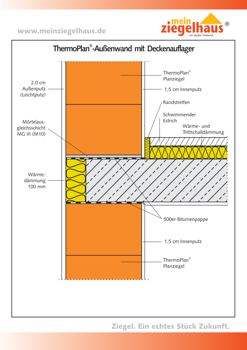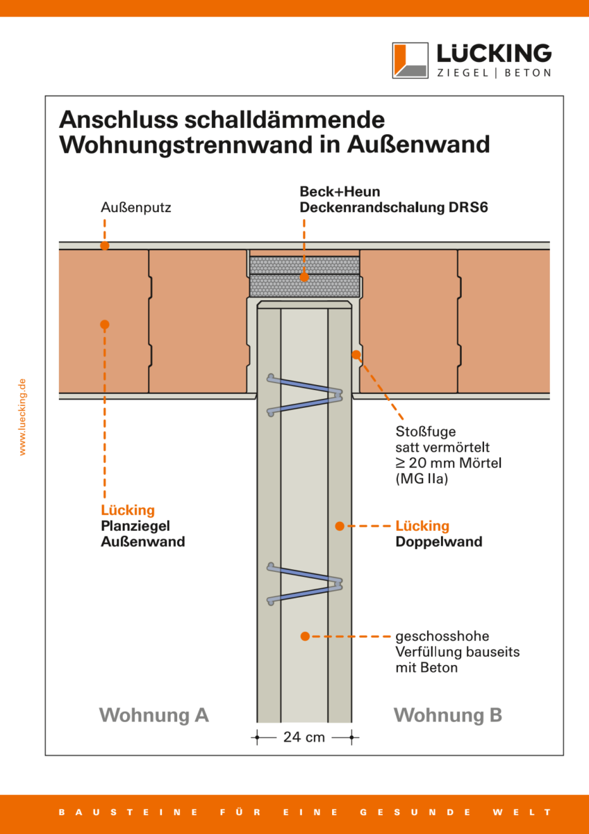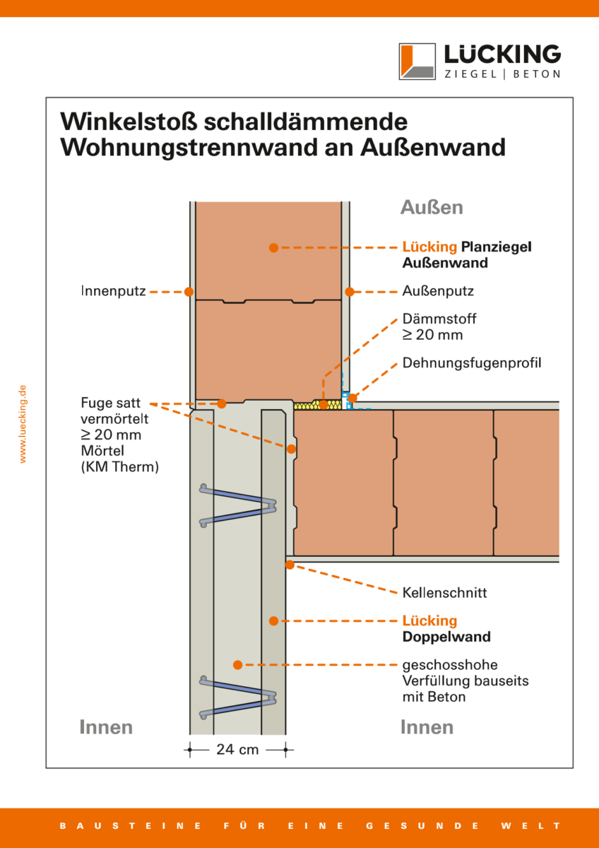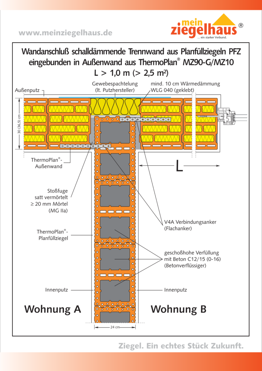 Winkelstoß Außenwand an Wohnungstrennwand aus Planfüllziegel