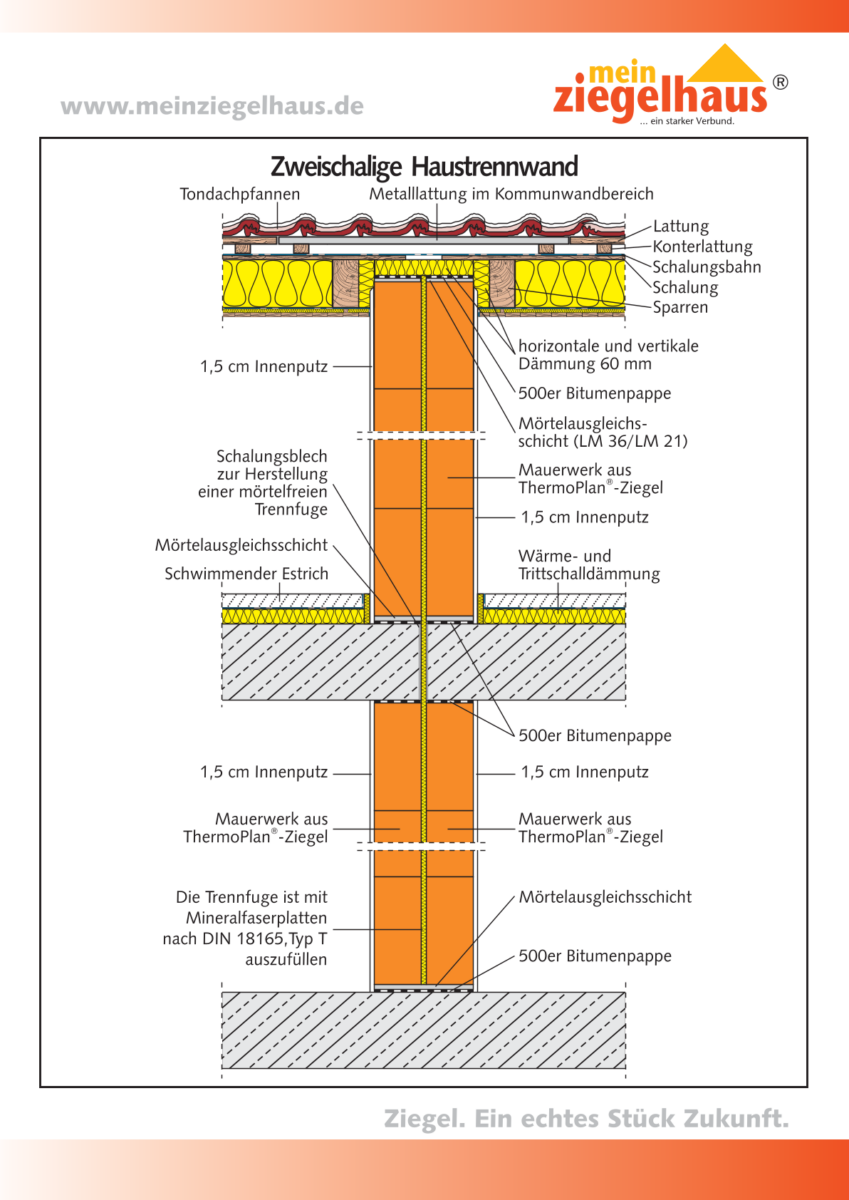 Planfüllziegel-Trennwand zweischalig
