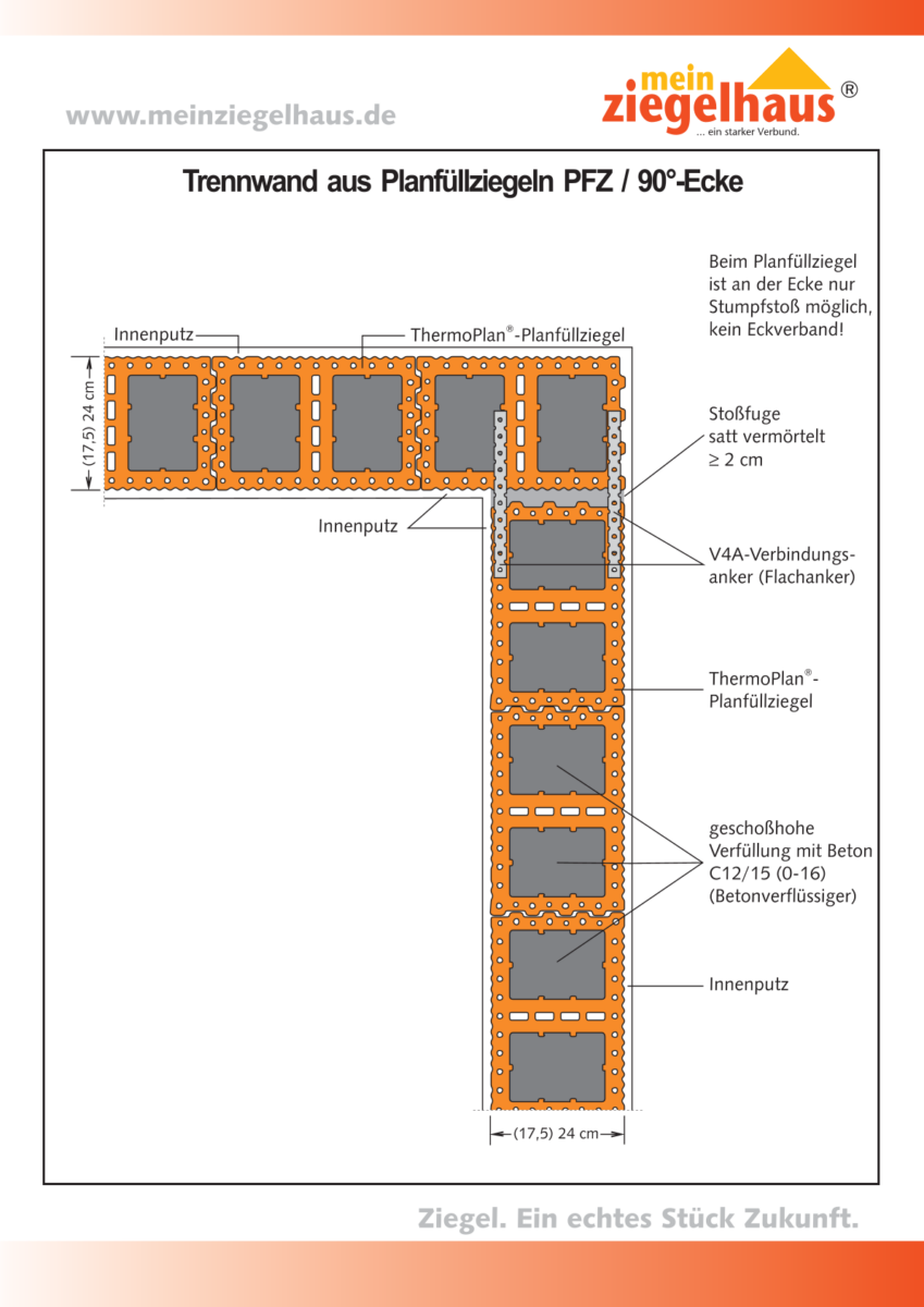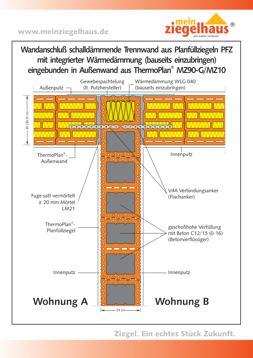 Planfüllziegel-Trennwand (2/3 eingebunden)