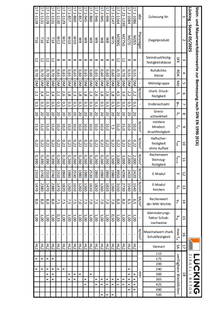 Datenblatt: Lücking Planziegel W8