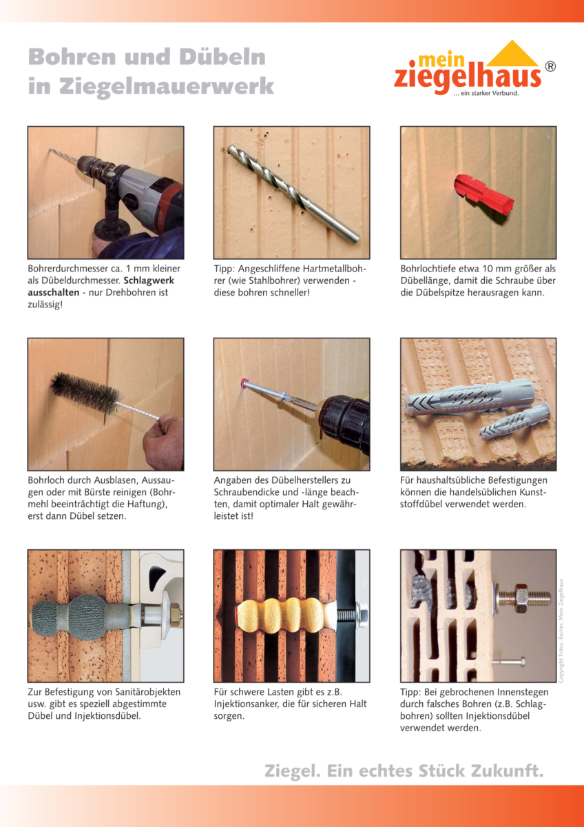 Bohren und Dübeln in Ziegelmauerwerk