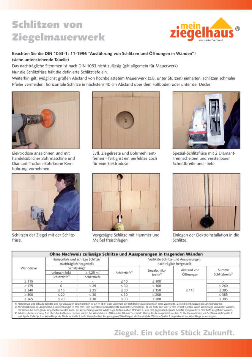 Schlitzen von Ziegelmauerwerk